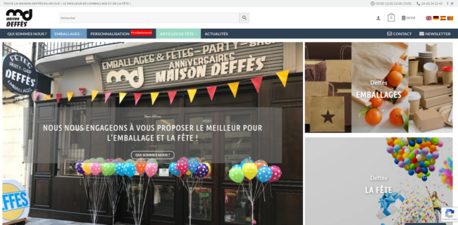 Site wordpress / woocommerce. Site web du magasin Maison Deffès à Perpignan, vente d’article de fête et emballages