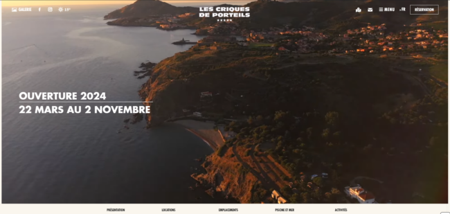 Site wordpress multilingue avec système de réservation. Site web du camping Les Criques de Porteils, camping 5 étoiles entre Collioure et Argelès sur mer.