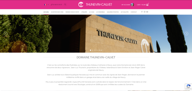 Site wordpress / woocommerce. Site web du domaine viticole Thunevin Calvet à Maury, vente de vin en ligne