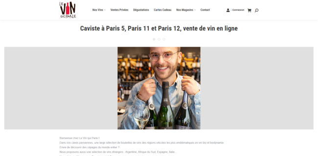 Site wordpress / woocommerce. Site web de la cave à vin Le vin qui parle, 3 boutiques à Paris. Vente de vins en ligne et de billet pour des évènements dégustations